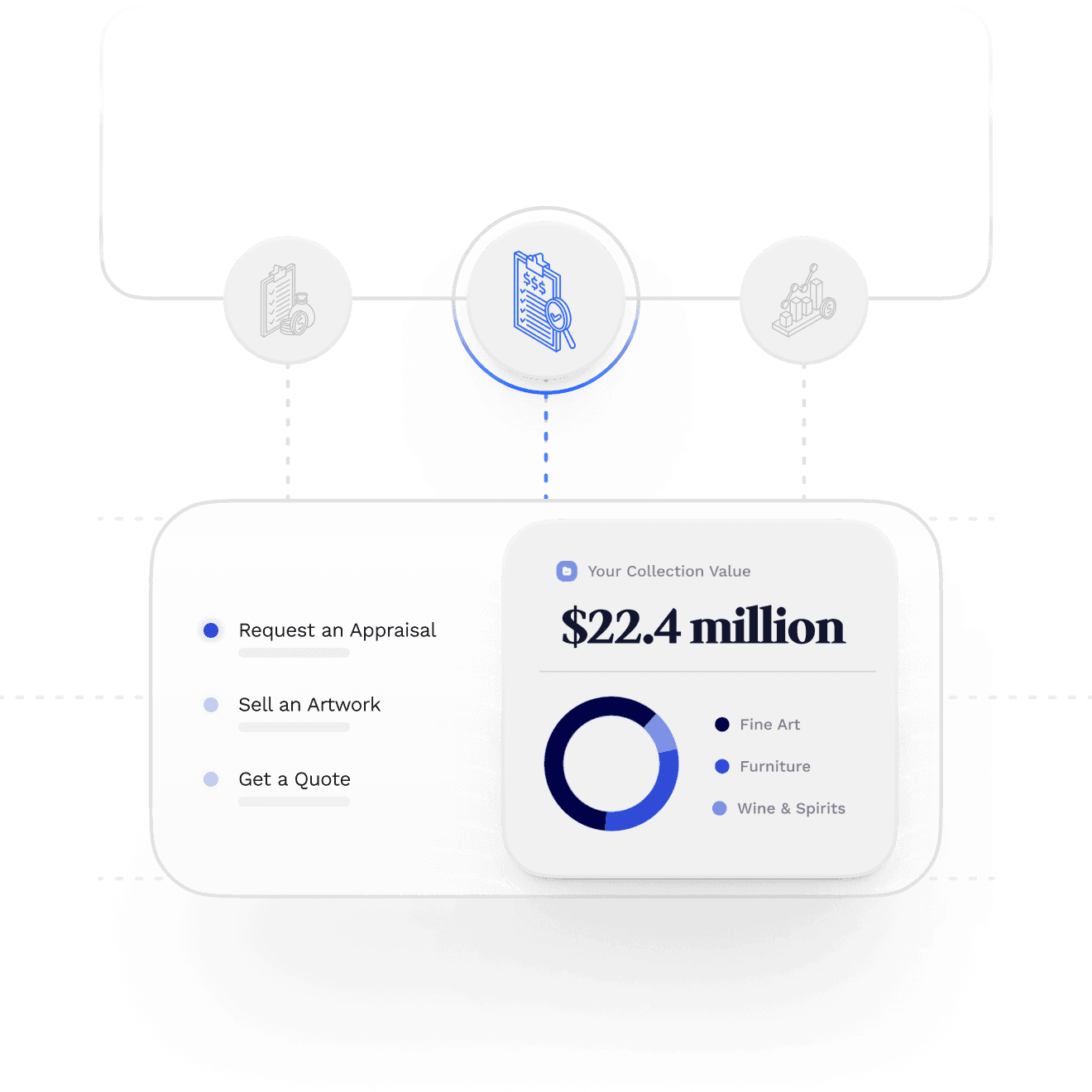 See your collection from a bird’s-eye view and seamlessly request services in just a few clicks. Whether you need an appraisal, a sale or purchase quote, or expert advice, our platform connects you to tailored art services — all within the context of your collection.